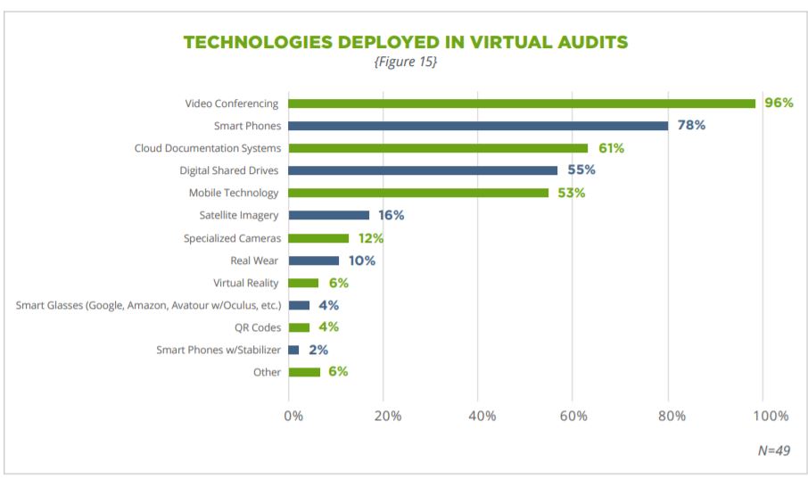 The figure below (labelled Figure15) indicates that companies are using a wide variety of technology that is commonly available as a tool in virtual audits.